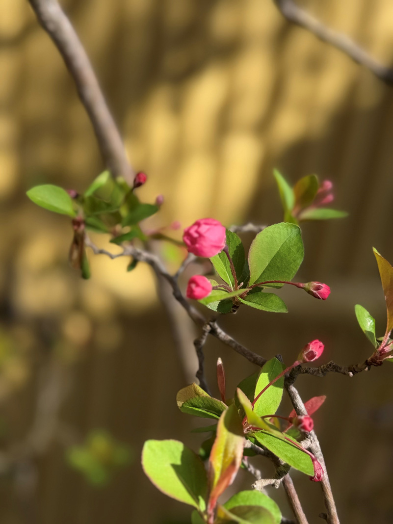 こちらは花海棠 桜と同じバラ科で、 桜はさくら属、花海棠はリンゴ属 の違いらしいのですが、 桜より長い期間花をつけています |