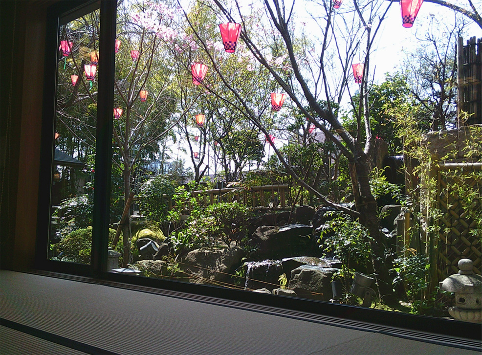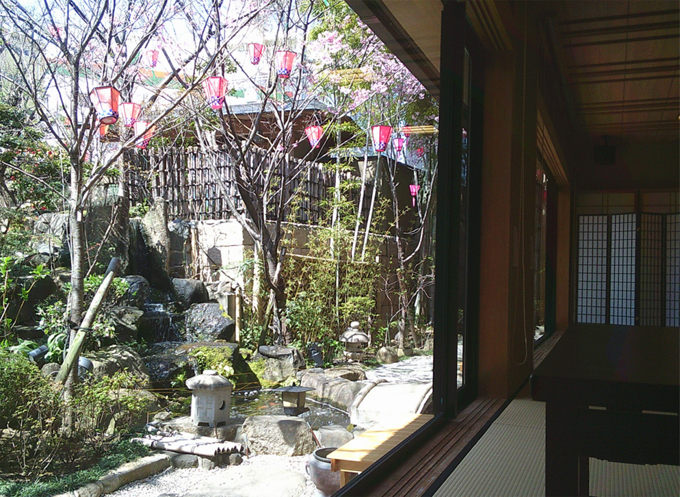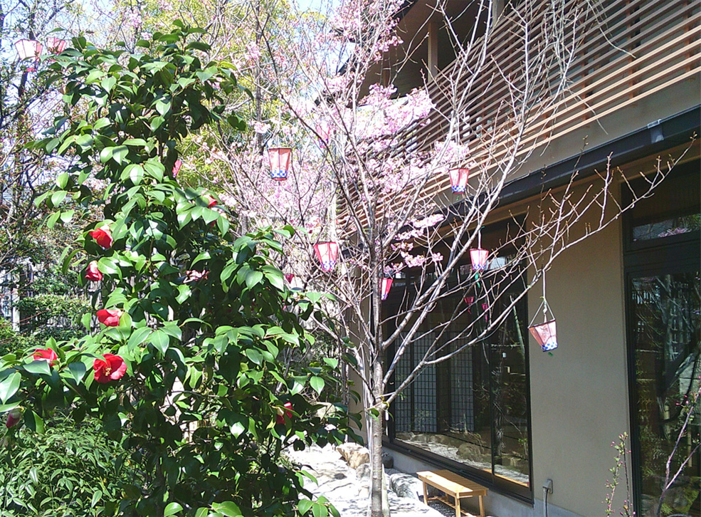 天王殿では 各お部屋より 桜を眺めながら お食事をして頂けます。