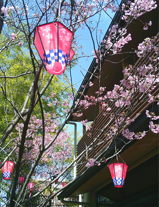 - 天王殿の庭一面に桜のぼんぼりが付きました